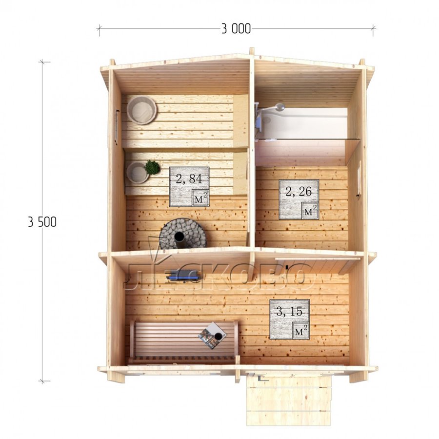 - Стеновой комплект: мини-брус камерной сушки 45 мм с чашами под проект. Материал дерева — ель, сосна (ГОСТ 8486). Влажность 12-14%. Высота стен 2,16 м.;