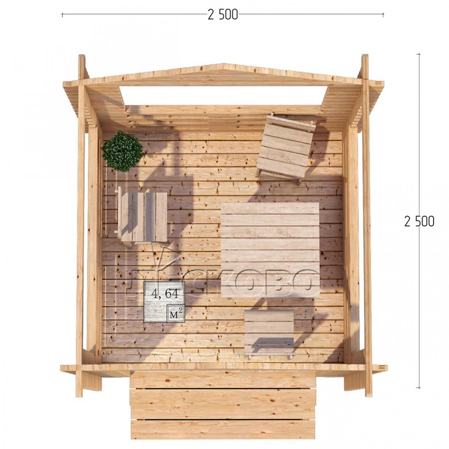 • Стеновой комплект: мини-брус камерной сушки 45мм с чашами под проект. Материал дерева — ель, сосна (ГОСТ 8486). Влажность 12-14%. Высота стен 2,16 м;