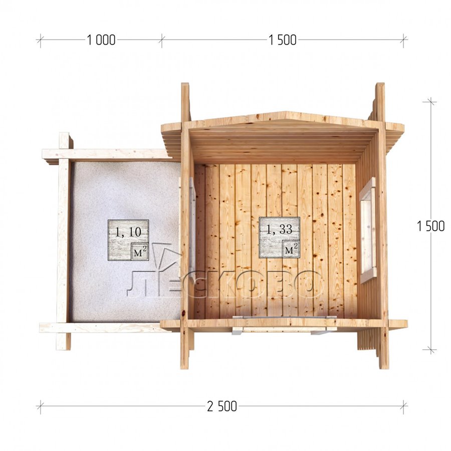 - Стеновой комплект: мини-брус камерной сушки 45мм с чашами под проект. Материал дерева — ель, сосна (ГОСТ 8486). Влажность 12-14%. Высота стен 1,35 м;